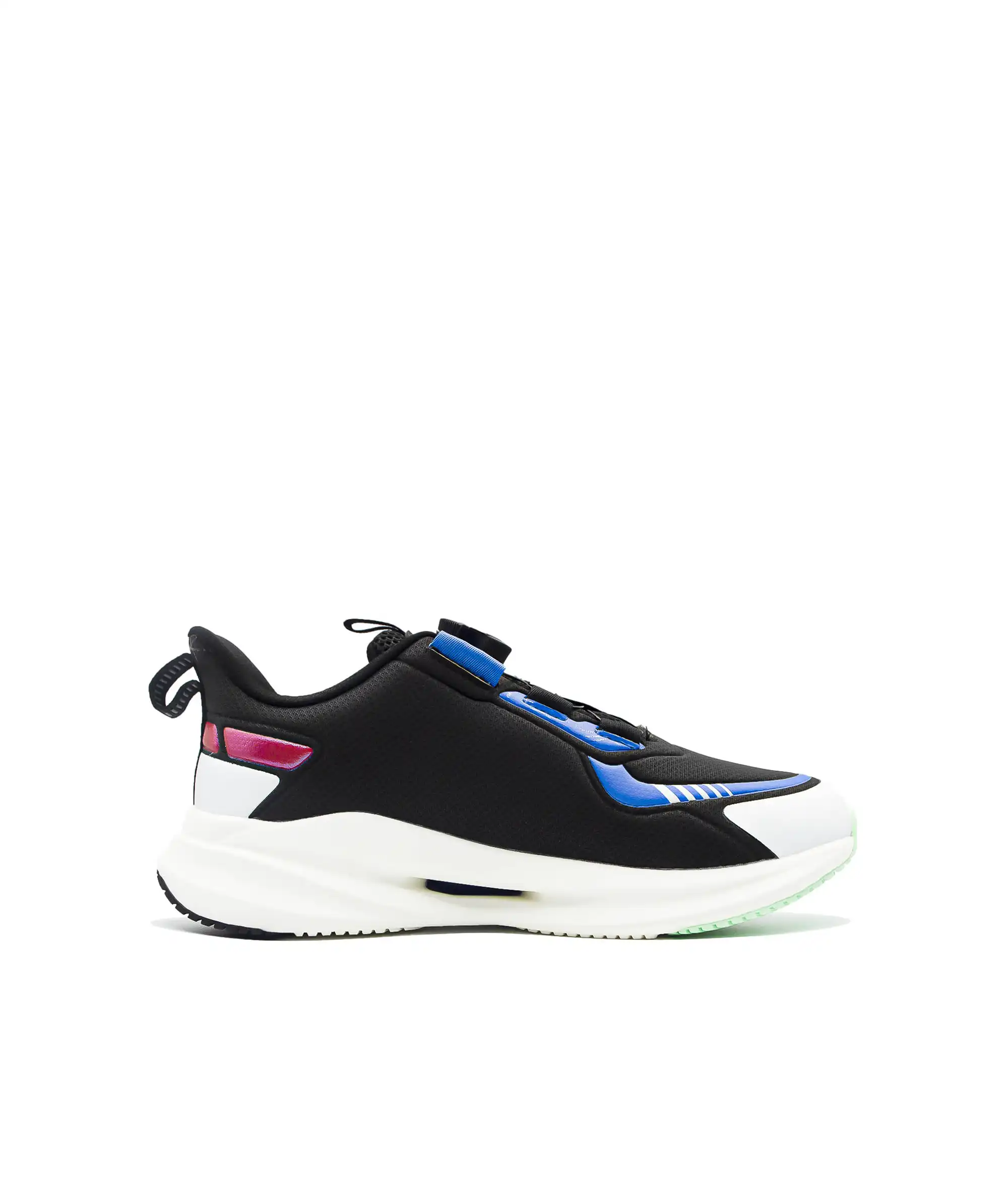 La semelle intermédiaire légère et amortissante procure un confort durable et réduit la fatigue du pied, soutenant les mouvements actifs et rapides des jeunes sportifs. Son design dynamique et moderne combine style et fonctionnalité, adapté aux garçons.