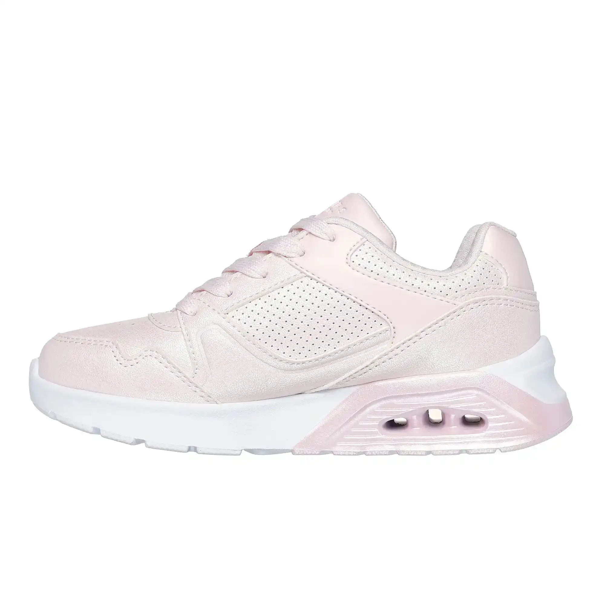 Affirmez votre style avec les Skechers Street™ UNO Lite 2.0. Cette sneaker mode à lacets associe une tige en Duraleather au fini scintillant avec des empiècements perforés sur les côtés, une semelle intermédiaire bicolore à découpes modernes et une semelle intérieure Skechers Air-Cooled Memory Foam® offrant un confort amorti et respirant.